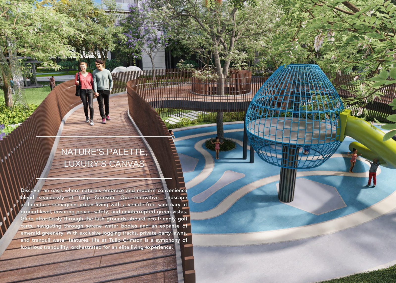 The Tulip Crimson Sector 70 has world-class amenities in store that a luxurious lifestyle requires, viz. a lake view party lawn, an outdoor health station, a cycling and a jogging track, a jacuzzi, an outdoor fitness area, a poolside lounge deck, a target forest, a wooden deck, half basketball court, a water garden and whispering surroundings, a cricket practice pitch, etc.